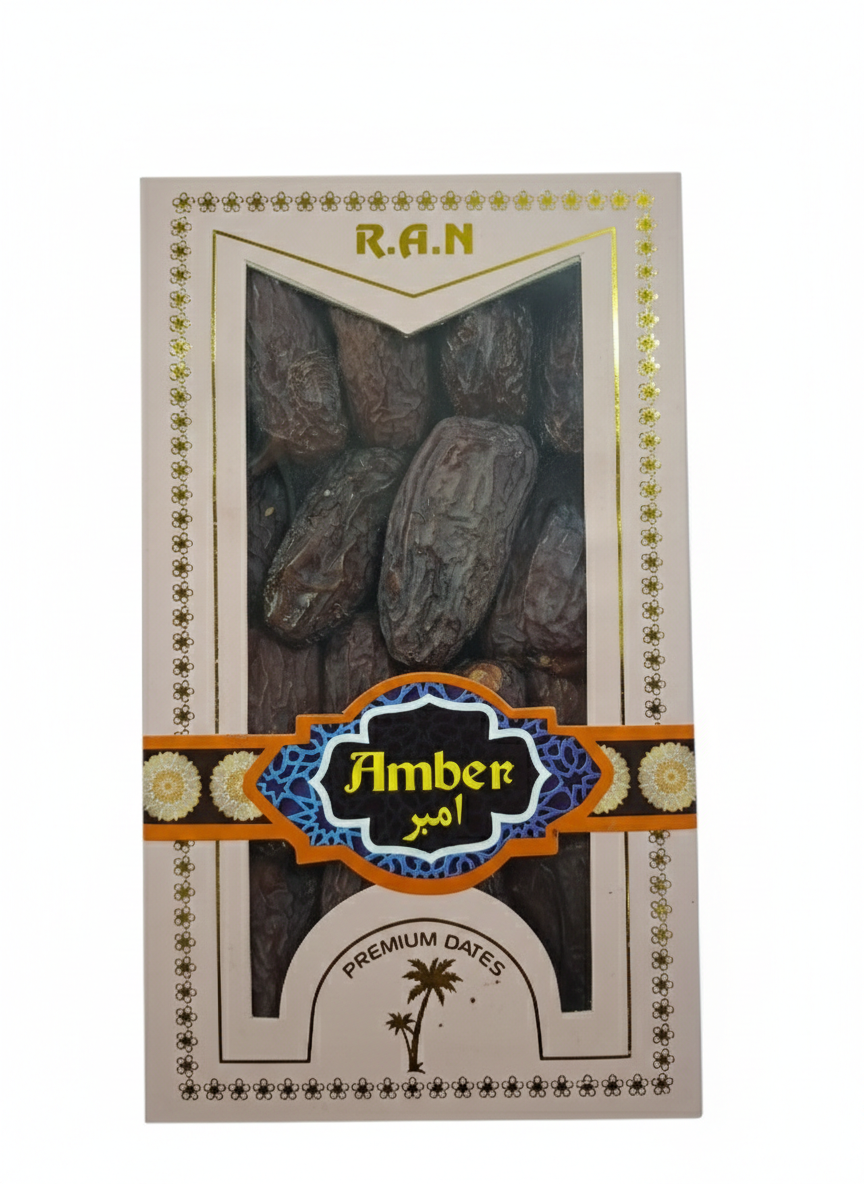 Indulge in the regal taste of Amber dates, a variety celebrated for its unique square shape and exceptional quality. Harvested with care, these dates offer a sophisticated balance of sweetness, boasting a firm, meaty texture that melts away with every bite.